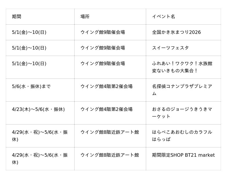 ■あべのハルカス近鉄本店の主なゴールデンウィークイベント