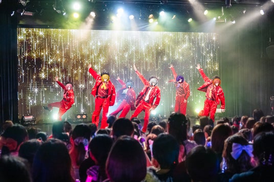 オープニングナンバーは、デビュー曲であり初のオリジナル曲「LIPTOLIP」だ。個性豊かな歌声を次々と繰り出し、ハイトーンが印象的なサビでグループのコンセプトを表現。エレガントな振り付けでも観客を魅了する。 続いては「僕らだけのシャングリラ」(原曲:すとぷり)。先輩グループすとぷりの人気楽曲だ。ミラーボールが輝く中、ダンス&ボーカルでフレッシュなステージを作り上げていった。