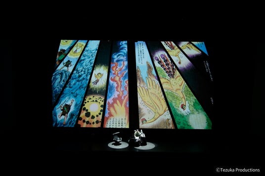 本作品は、手塚治虫『火の鳥』を原作に、マンガを「みんなで体験する」ライブパフォーマンスとして再構成した舞台です。巨大LEDやロボットアームなどの演出を通じて、ページを読み進める感覚や物語への没入体験を、会場全体で共有する新しいマンガ体験として展開されます。