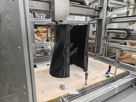 全体のフォルムは、翼をたたんで佇む鳥をイメージし、3Dプリントによって滑らかな曲面を持つ有機的な形状を実現しています。