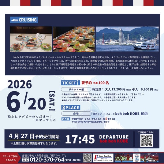 2022 年より JAPAN RUGBY LEAGUE ONE 開催期間中、毎週月曜に放送されている「ラグビーわんだほー!」が、番組開始以来2度目となる船上での単独イベントを開催。大盛況となった前回のイベントが再び神戸の地に帰ってきます。
