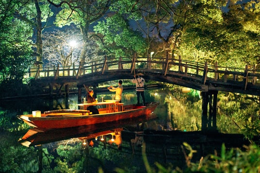 1976年、福岡県柳川市の川下り会社として設立。かつての城下町・柳川は、「掘割(ほりわり)」と呼ばれる水路が巡り、自然と調和した水郷風景が広がっています。詩人・北原白秋の故郷としても知られ、その感性をこの地で育まれました。私たちはここを舞台に、船頭による巧みな竿さばきに歴史や文化の語らい、舟歌を添えて、心豊かなひとときをお届けします。