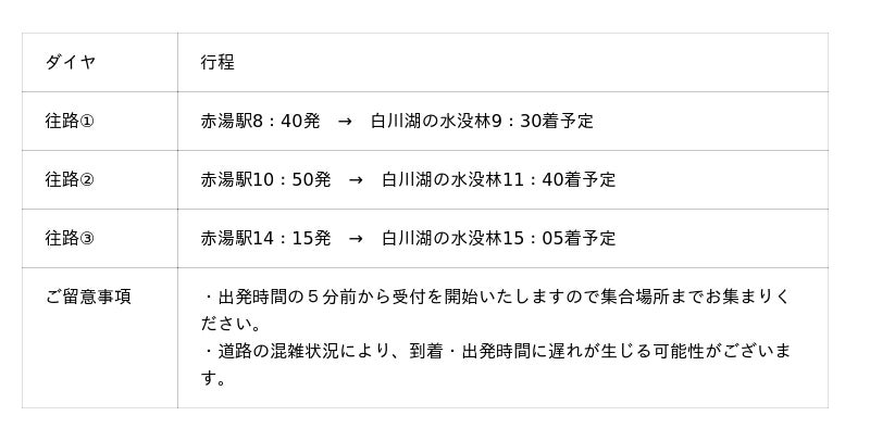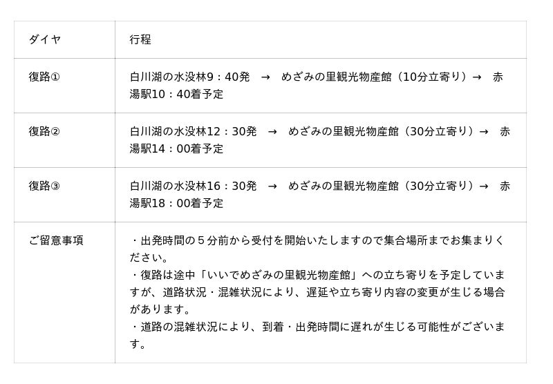 赤湯駅↔白川湖の水没林 シャトルバス 運行概要