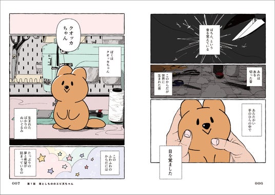 ぬいぐるみたちが持ち主に大切にしてもらった思い出や、大切にされたい気持ち…、ぬいぐるみのまわりで巻き起こる“あるあるネタ”を随所に散りばめ、クオッカちゃんとその仲間たちの背景や、ぬいぐるみシェアハウスの日常、時には人間視点のパラレルワールドを描きます。