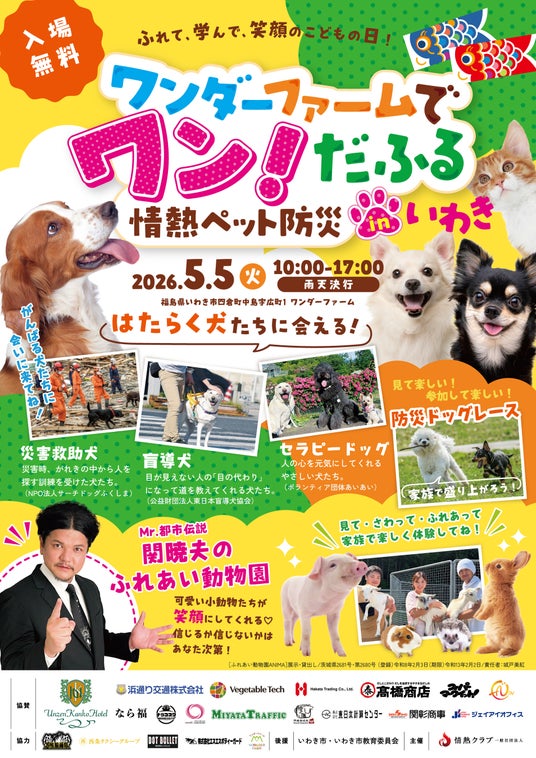 イベント名:ワンダーファームでワン!だふる 情熱ペット防災 in いわき開催日時:2026年5月5日(火・祝) 10:00~17:00