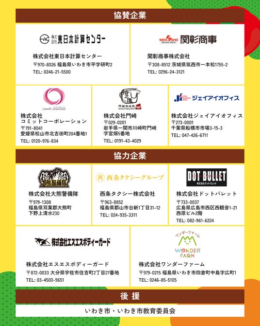 本イベントを支えてくださる協賛・協力企業・団体様がそろいました。また、いわき市の後援をいただいております。