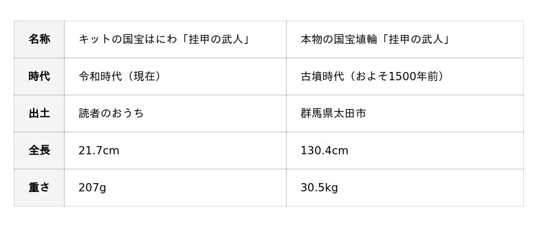 ▲キットは全長約20cmで重さは約200g。ずっしりとした存在感で、表面の装飾やよごれまで再現したはにわです。