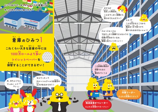 本冊子は、ネットショップで注文した商品がどのようにして届くのか、その裏側にある「倉庫」と「物流のしくみ」を、ユーモアたっぷりの物語とクイズ形式で紹介しています。