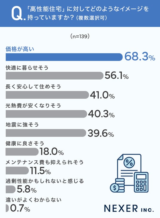 ■68.3%が、高性能住宅に対して「価格が高い」というイメージを持っていると回答