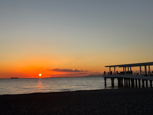 稲毛海浜公園の浜辺から望む夕日
