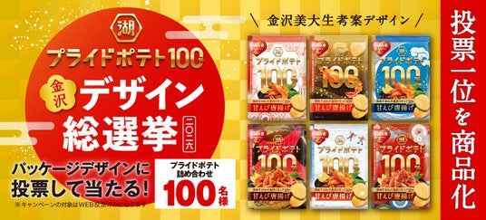 株式会社湖池屋(社長:佐藤章)は、2018年より推進している「湖池屋 JAPAN PRIDEプロジェクト」の取り組みの一環として、新たに「湖池屋プライドポテト100%」シリーズを展開します。商品発売に先駆け、金沢市および金沢美術工芸大学との共同企画として、2026年10月に発売予定の新商品「湖池屋プライドポテト100% 甘えび唐揚げ」のパッケージデザインを一般投票で決定する『2026 湖池屋プライドポテト100% 金沢デザイン総選挙』を、2026年4月28日(火)より実施します。