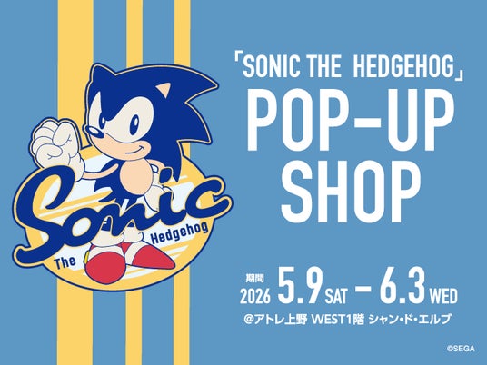 株式会社アトレ(本社:東京都渋谷区、代表取締役社長:高橋 弘行※)が運営する直営ショップ「シャン・ド・エルブ アトレ上野店」(所在地:東京都台東区)は、世界的人気を誇るセガのキャラクター「ソニック・ザ・ヘッジホッグ」のPOP-UP SHOPを2026年5月9日(土)から6月3日(水)まで期間限定で開催します。期間中は限定ノベルティプレゼントの企画も実施します。