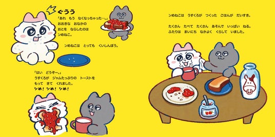 本書の魅力は、個性的なふたりのキャラクターと、その関係性です。笑ったり泣いたり、元気で忙しない「ンめねこ」とクールで面倒見のよい「うすくろ」という正反対なふたりは、互いを補完しあう名コンビ。ふたりが協力しながらお弁当を作りあげていく様子に、思わず応援したくなること間違いなしです。
