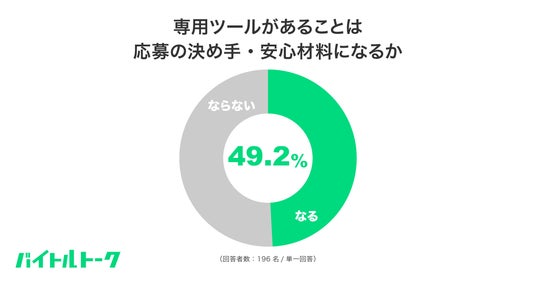 約半数の49.2%が私用SNSを使用しない専用チャットツールの導入を応募の決め手や安心材料として評価