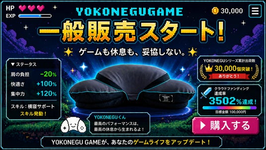 横寝専用枕ブランド「YOKONEGU」から、長時間のゲーム姿勢と休息を両立する新モデルが誕生