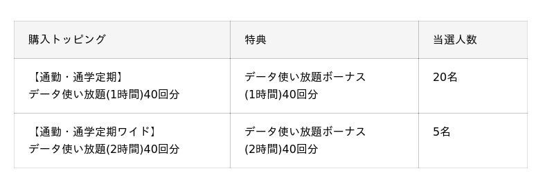 2. キャンペーン期間中に、「通勤・通学定期」トッピングを購入すること