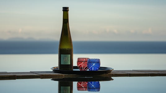 本プランの特典として、La BOMBANCE古宇利島オリジナル日本酒ボトル「東洋美人 純米大吟醸 古宇利B」(500ml)をプレゼントいたします。