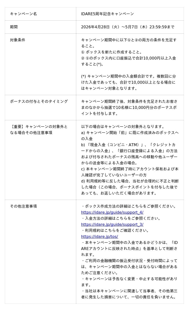 URL: https://campaign.idare.jp/2604-5th-anniversary/index.html