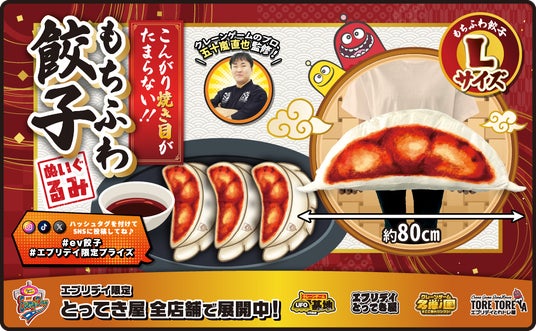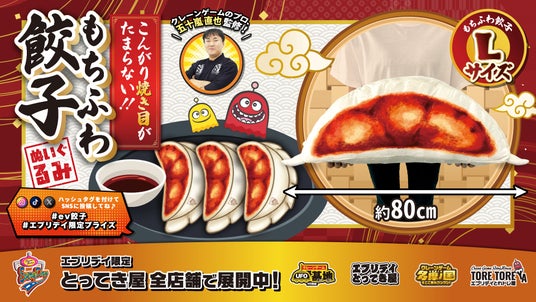 「笑顔創造」が企業理念の株式会社東洋(代表取締役:中村秀夫/本社:埼玉県桶川市以下、当社)は、当社が展開するクレーンゲーム景品シリーズ「エブリデイ オリジナル景品」として、新たにクレーンゲームのプロ監修のふかふかで大きな「もちふわ餃子ぬいぐるみ」が登場します。
