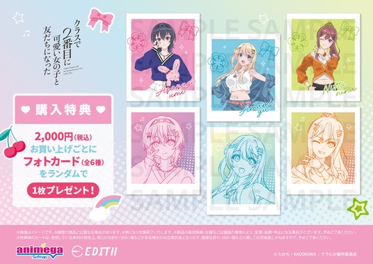 イベント事業・グッズ事業を手掛ける株式会社イーディス(本社:東京都豊島区、代表取締役:森俊平、以下イーディス)は、TVアニメ「クラスで2番目に可愛い女の子と友だちになった」より、描き下ろしイラストを使用した商品をアニメガ×ソフマップにて先行販売いたします。