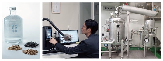 天然物がもたらす複雑な香りを、科学の目で「分ける(分析)」、その構造を「分かる(理解)」、そして再構築した価値を「分かちあう(製品化)」のがテーマです。ジンやスピリッツの香りの成分を、ガスクロマトグラフィー(香気分析手法)で可視化し、製品設計し、製薬技術で製品化するという、これまでの酒造にはないアプローチでモノづくりをおこなっています。