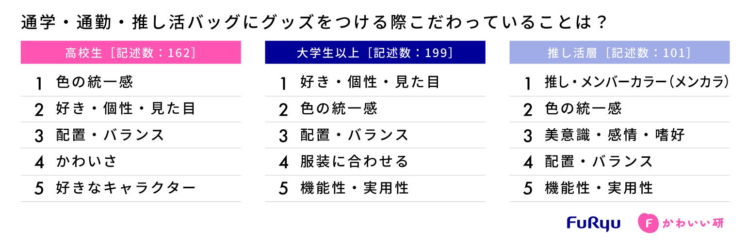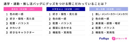 フリュー調査レポート「バッグへのじゃら付け」_通学・通勤・推し活バッグにグッズをつける際にこだわっていることは?