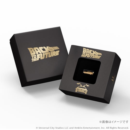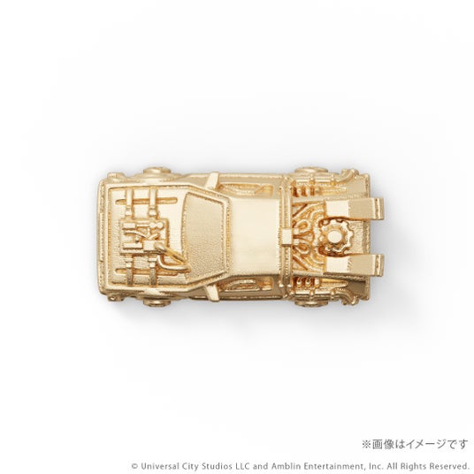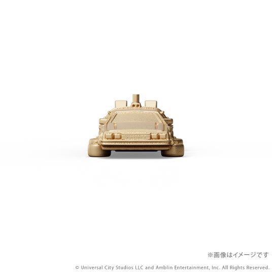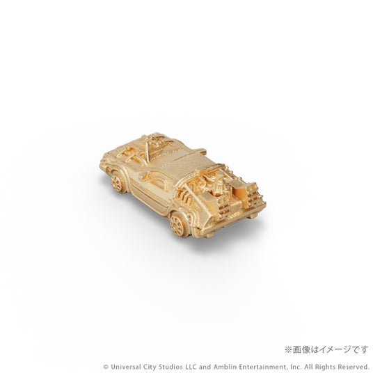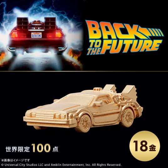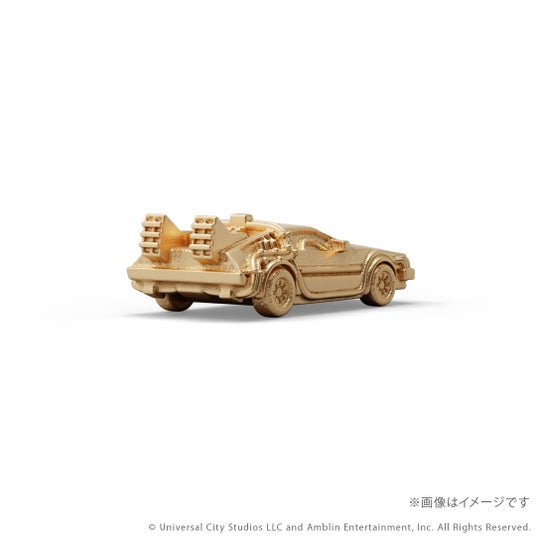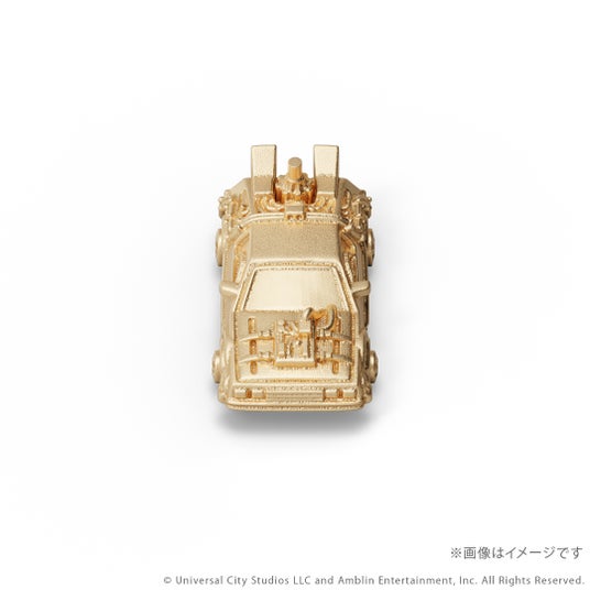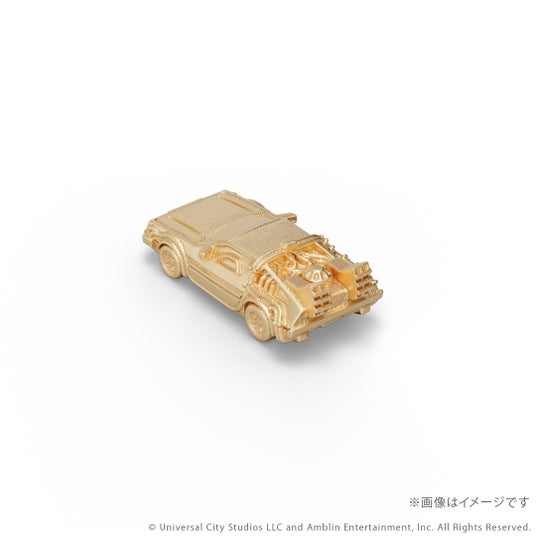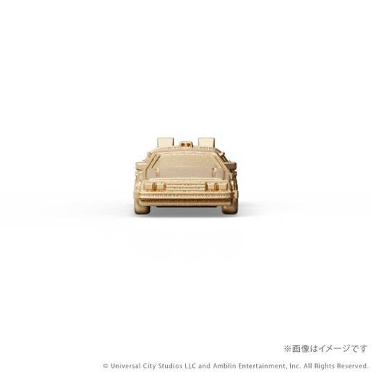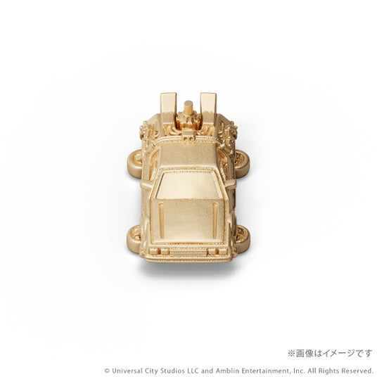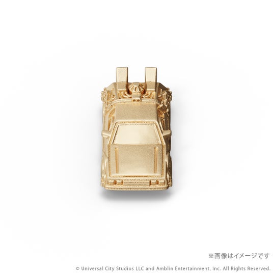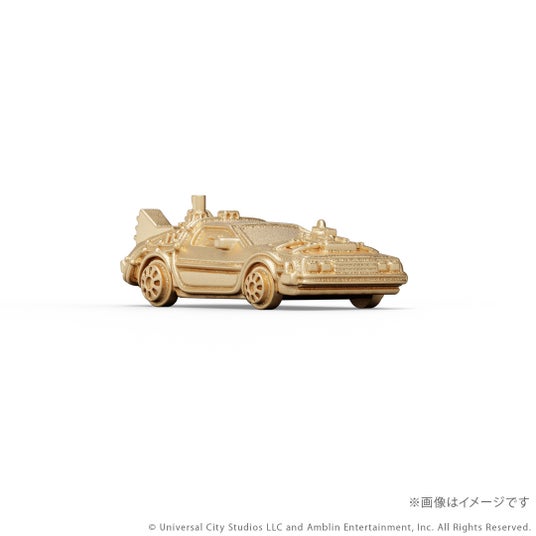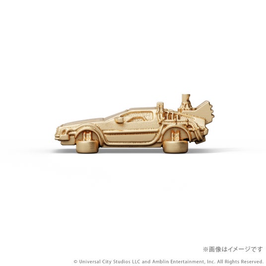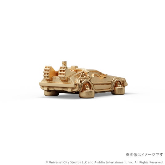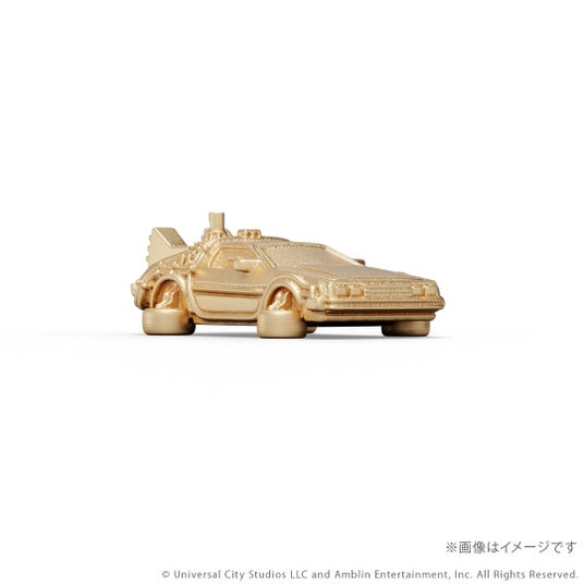 『バック・トゥ・ザ・フューチャー』シリーズに登場するタイムマシンをK18イエローゴールド製のミニチュアサイズで再現。