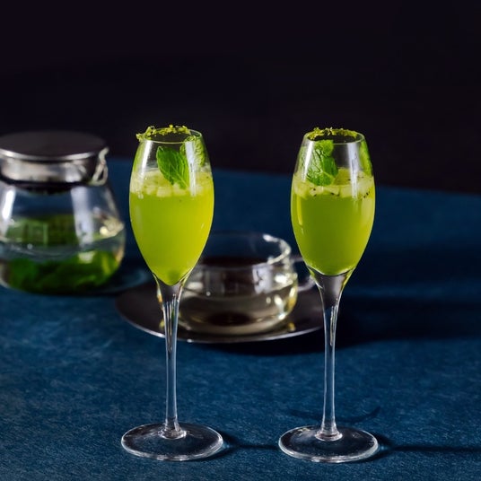 キウイとミントのモクテル(写真1・手前)は、フレッシュキウイ、ミント、エルダーフラワーのシロップを加え、炭酸で割った甘酸っぱく爽やかなドリンク。ノンアルコールドリンクで提供いたします。