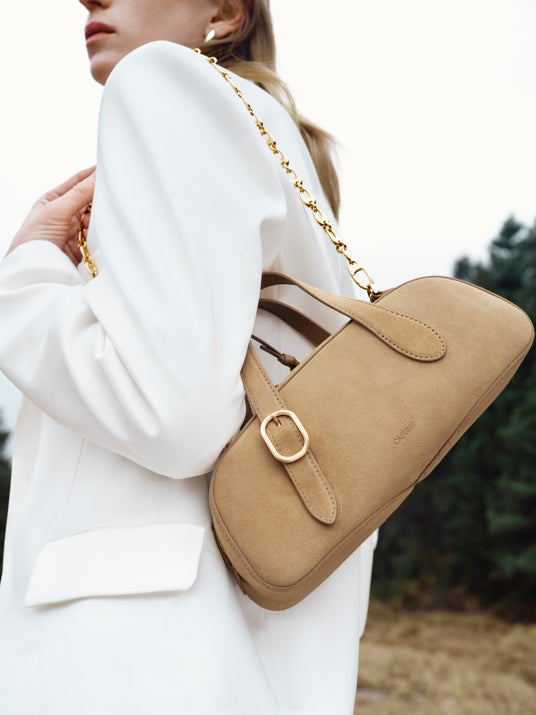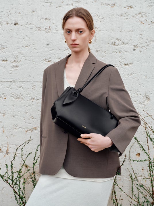 日本の折り紙からインスピレーションを得た彫刻のような凛とした佇まいと、植物をイメージさせる繊細な曲線づかいのチューブハンドル&リーフモチーフが魅力の「Ori」シリーズから、より日常に寄り添うサイズ感へと進化したショルダーバッグが登場。