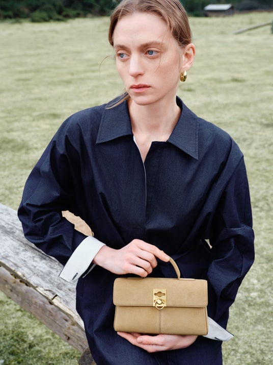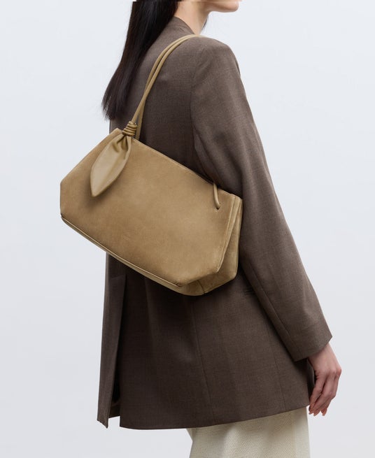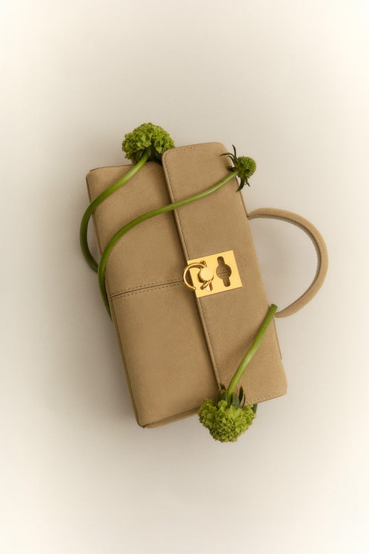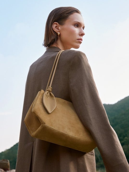 本コレクションのもう一つのハイライトは、ブランド初登場の新色Dawn(ドーン)とスエード素材の融合です。新色Dawnは、その名の通り「夜明け」を象徴し、夜から朝へと移ろう、空に柔らかく広がる最初の一筋の光にインスパイアされた、霞みがかった繊細なトーンが特徴。Cafuneは、この絶妙なニュアンスカラーを表現するために、光を優しく吸収し、自然な陰影を生み出すスエード素材を採用しました。このDawnのスエード素材は、新作Mini Asra Boston Bag を含む3つのスタイルで展開され、春夏の装いに洗練された奥行きを添えてくれます。