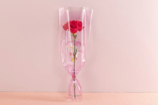 物価高の現在でもこの価格を貫き、店頭では対象のカーネーションを子ども目線に陳列し、あえて大人と同じレジに並んで購入いただく“体験”のルールを大切にしています。