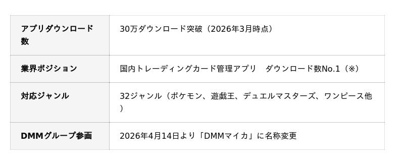 2023年4月のサービス開始以来、ポケモンカード、遊戯王、ワンピースカードゲームなど主要トレカジャンルの相場確認・EC購入・コレクション管理をワンストップで提供するアプリとして、多くのトレカファンの皆様にご愛顧いただいてまいりました。おかげさまで累計30万ダウンロードを突破し、国内トレーディングカード管理アプリのダウンロード数No.1を達成いたしました。