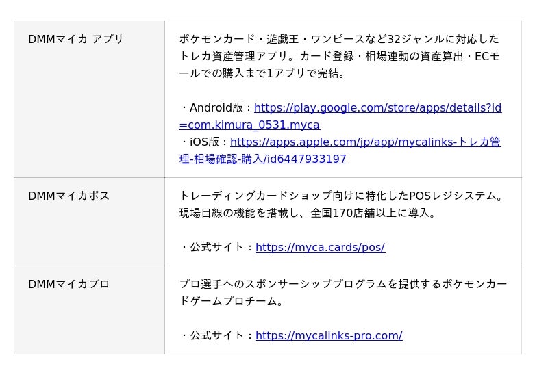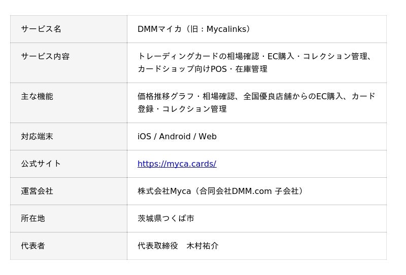 「DMMマイカ(旧:Mycalinks)」は、ポケモンカードをはじめとするトレーディングカードの資産管理に特化したアプリです。2023年のサービス開始から3年で累計30万人を突破し、2026年4月よりDMMグループの一員として新ブランド「DMMマイカ」として再スタートを切りました。「カード業界を盛り上げる」という想いはそのままに、DMMグループのスケールを活かしたサービス拡充を進めています。