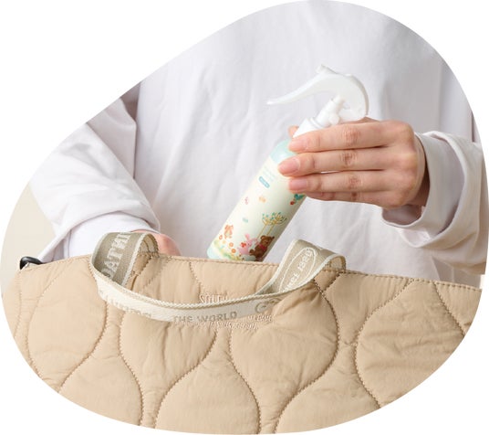 スプレータイプのため、片手で手軽に使用でき、動き回る赤ちゃんのお手入れもスムーズに行えます。腕やからだにスプレーするだけで簡単に塗布でき、忙しい外出前や外出先でのUV&保湿ケアにも適しています。