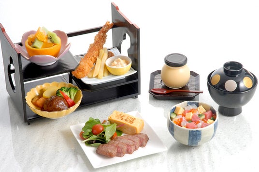 鹿児島県産黒毛和牛100%使用のハンバーグ、ステーキ。海老フライやフライドポテト、フルーツといったお子さまの大好きな料理が詰まった、お子さま専用会席料理をご用意。デザートの「大穀プリン」は平飼たまごを使用し、濃厚な味わいと自家製のカラメルでどうぞお楽しみください。