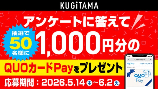 イベント期間中には、「KUGITAMA」プロジェクトに関するアンケートを実施します。ご回答いただいた方の中から抽選で、デジタルギフト「QUOカードPay」を進呈するキャンペーンを実施いたします。皆さまの貴重なご意見・ご感想をお待ちしております。