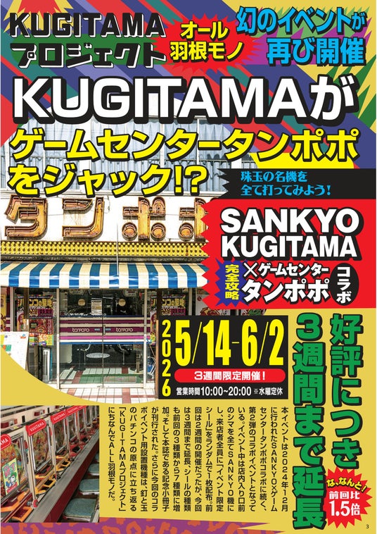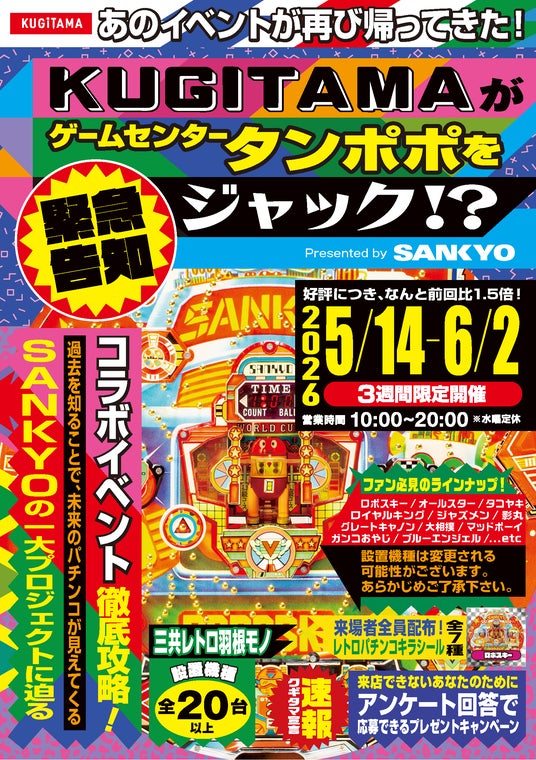 株式会社SANKYO(本社:東京都渋谷区 代表取締役社長 小倉敏男)は、2026年5月14日(木)~6月2日(火)の期間、東京都福生市にある「ゲームセンタータンポポ」との特別コラボイベントを開催いたします。