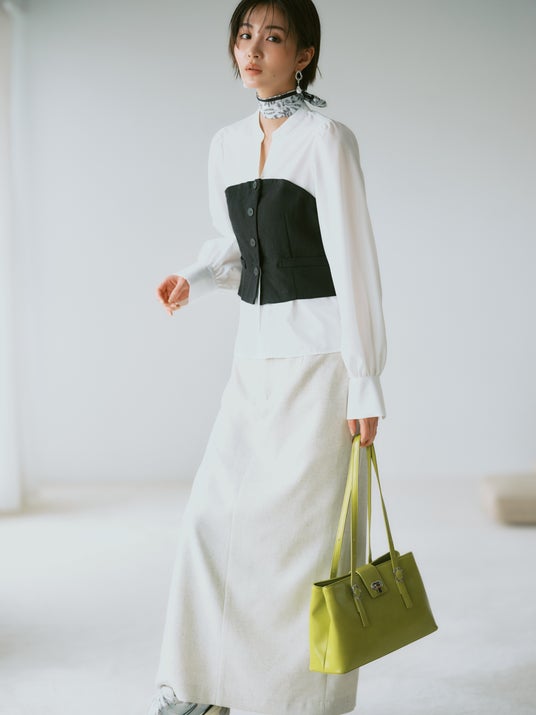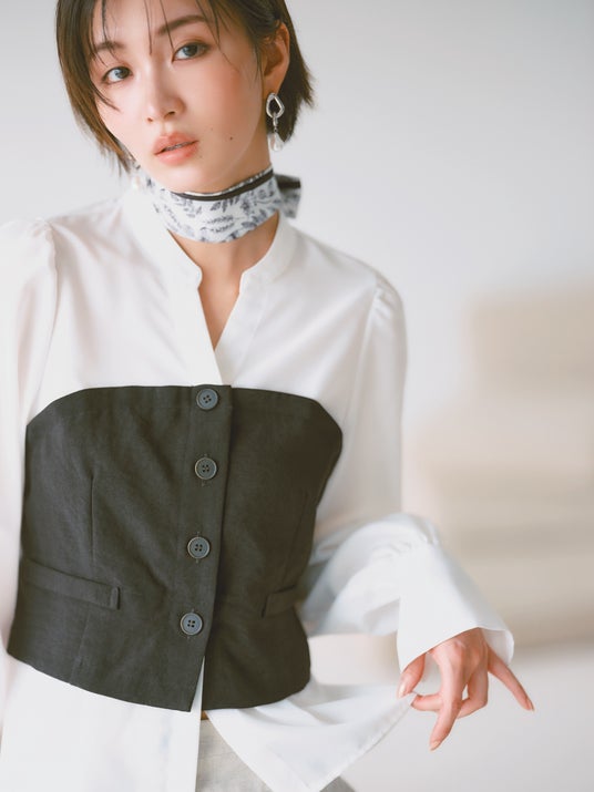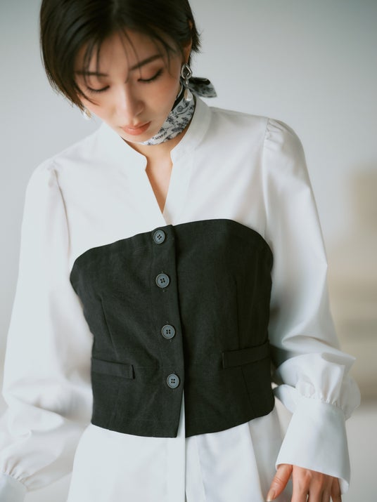 美easy前開きビスチェドッキングシャツ