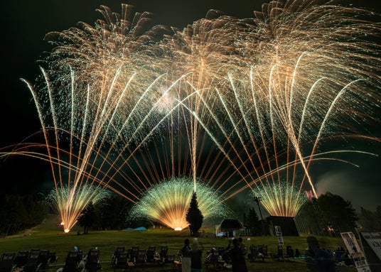 日本を代表する花火の匠の方々とご一緒でき、多くを学ぶ機会となりました。今回、改めて会場となる富士山を見た際に、雲の上に浮かぶような神々しさに圧倒され、この地で打ち上げる以上、それにふさわしい花火が求められると感じました。スキー場特有の地形や観客との距離によって花火の見え方は変わります。大きな玉は単独で見せるなど、見せ方や配置など、地形を活かした演出の難しさと奥深さを実感しました。型物花火は、火薬で形を描く繊細な技術が必要となるため、崩さずに打ち上げるのが難しいが私たちの得意分野でもあるので、ぜひまた挑戦したい。各分野の名人たちが多彩な花火を用意しているので、ぜひその違いに注目してこれからも楽しんでほしい。花火ファンも大満足の花火エンターテインメントです。
