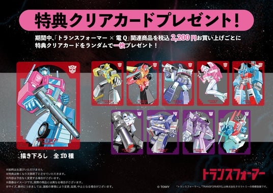 『トランスフォーマー×電Q POP UP SHOP』にて、2,200円(税込)お買い上げごとに、先着でクリアカード(全10種)をランダムでプレゼント!