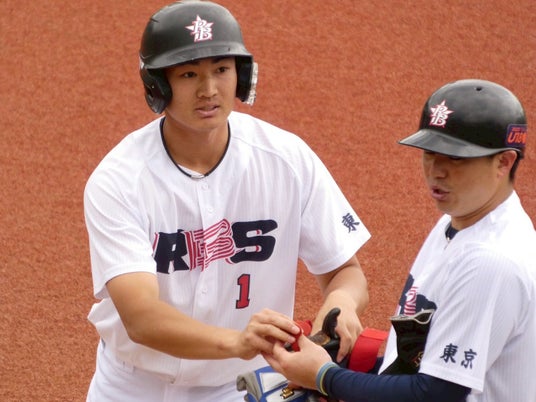 試合終盤、右適時打を放った杉山選手