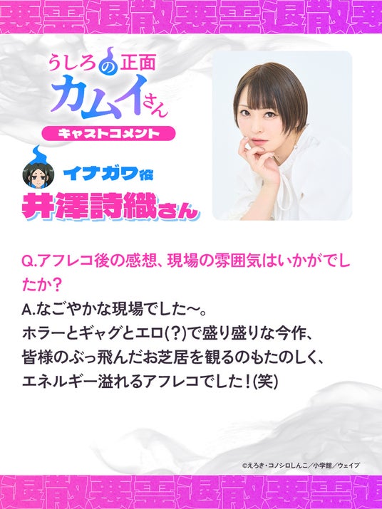 ホラーとギャグとエロ(?)で盛り盛りな今作、皆様のぶっ飛んだお芝居を観るのもたのしく、エネルギー溢れるアフレコでした!(笑)