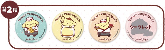 期間中に「ポムポムプリンのごきげんケーキ」または「プリンケーキ(ピック付き)」をご注文いただくと、今回のオリジナル缶バッジ(第1弾4種/第2弾4種・ランダム)を1つプレゼントします。