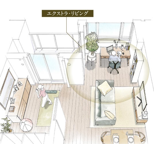 長谷工グループが独自開発した可動収納ユニット「UGOCLO S(ウゴクロ・ エス)」(1列可動)を一部住戸に採用しました。子供の成長などライフスタイルの変化に応じて部屋の広さを変更したり、テレワークスペースにするなど空間の自由度を高めます。