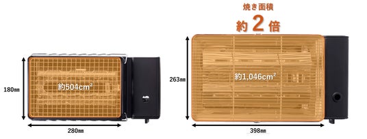 従来品「カセットガス炉ばた焼器“炙りやII”」と比較して、焼き面積は約2倍。大きな海鮮や野菜、串焼きなどをゆったりと並べられます。ご家族での食事や大人数でのパーティーでもお楽しみいただけます。