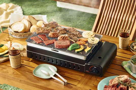 赤熱させた輻射板の熱で食材を焼くため、直火に比べて焼きムラが少なく、ふっくらジューシーに美味しく調理できます。点火つまみを回すだけで、強火で一気に焼き上げる肉料理から、じっくり火を通したい海鮮や焦げやすい野菜まで、食材に合わせた火力調節が可能です。また、カセットガス式なので、面倒な火おこしや組み立てが不要。すぐに調理を開始でき、後片付けも簡単なため、BBQ初心者の方にもおすすめです。