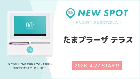 全国の商業施設や交通機関、公共施設、オフィス、学校などの女性個室トイレに、生理用ナプキンを常備し、無料で提供する日本初*¹のサービス「OiTr(オイテル)」を展開するオイテル株式会社(本社:東京都新宿区、代表取締役:崎山 真)は、「トイレットペーパーのように、個室トイレに生理用品が行き届く社会」の実現を目指し、新たに「たまプラーザ テラス(神奈川県横浜市)」にOiTrを設置し、2026年4月27日よりサービスを開始いたしましたことをお知らせいたします。