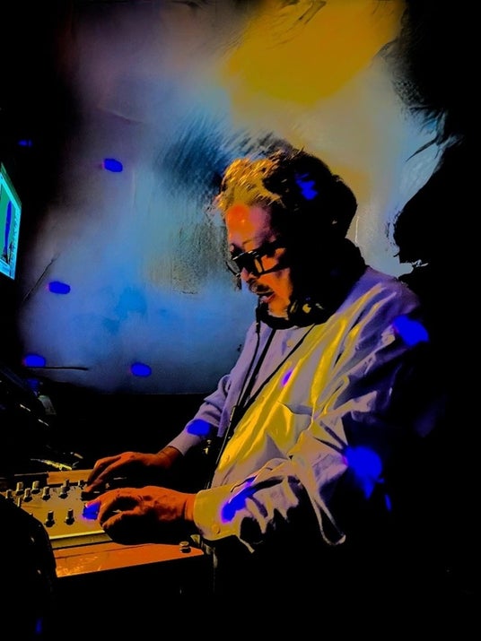 自ら開発した「セオイ(背負い)ネオン」を光らせた強烈なビジュアルで注目を集める異色のDJ。サイバー感あふれる衣装とインパクト抜群の佇まいで登場し、懐かしの歌謡曲からアニソンまでを自在に横断。見た目と音の両面から唯一無二の空間を創り上げる。