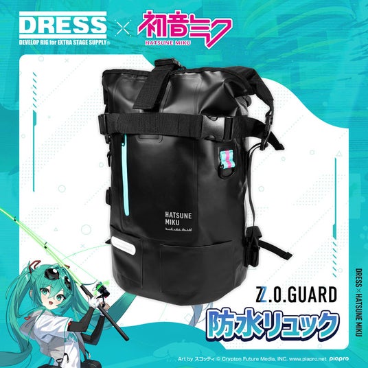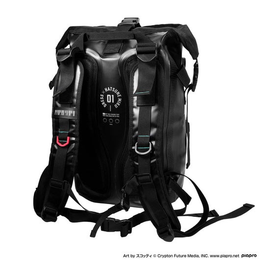 DRESSで人気の防水リュックに初音ミクカラーを落とし込んでいます。