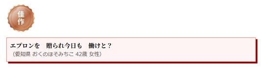 しゅふ川柳2026 【母の日】部門 優秀賞